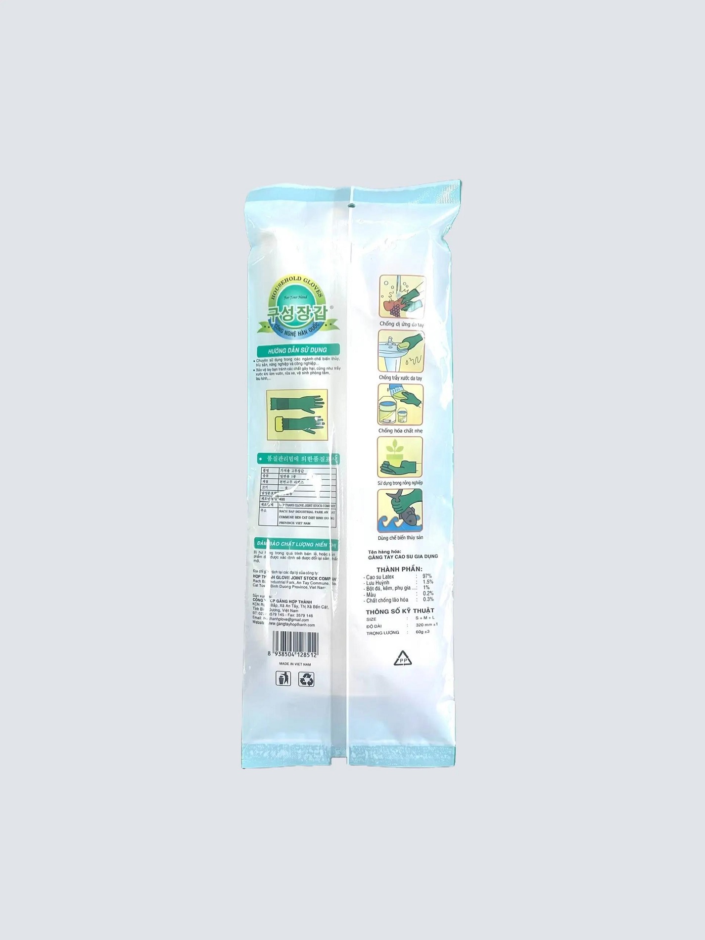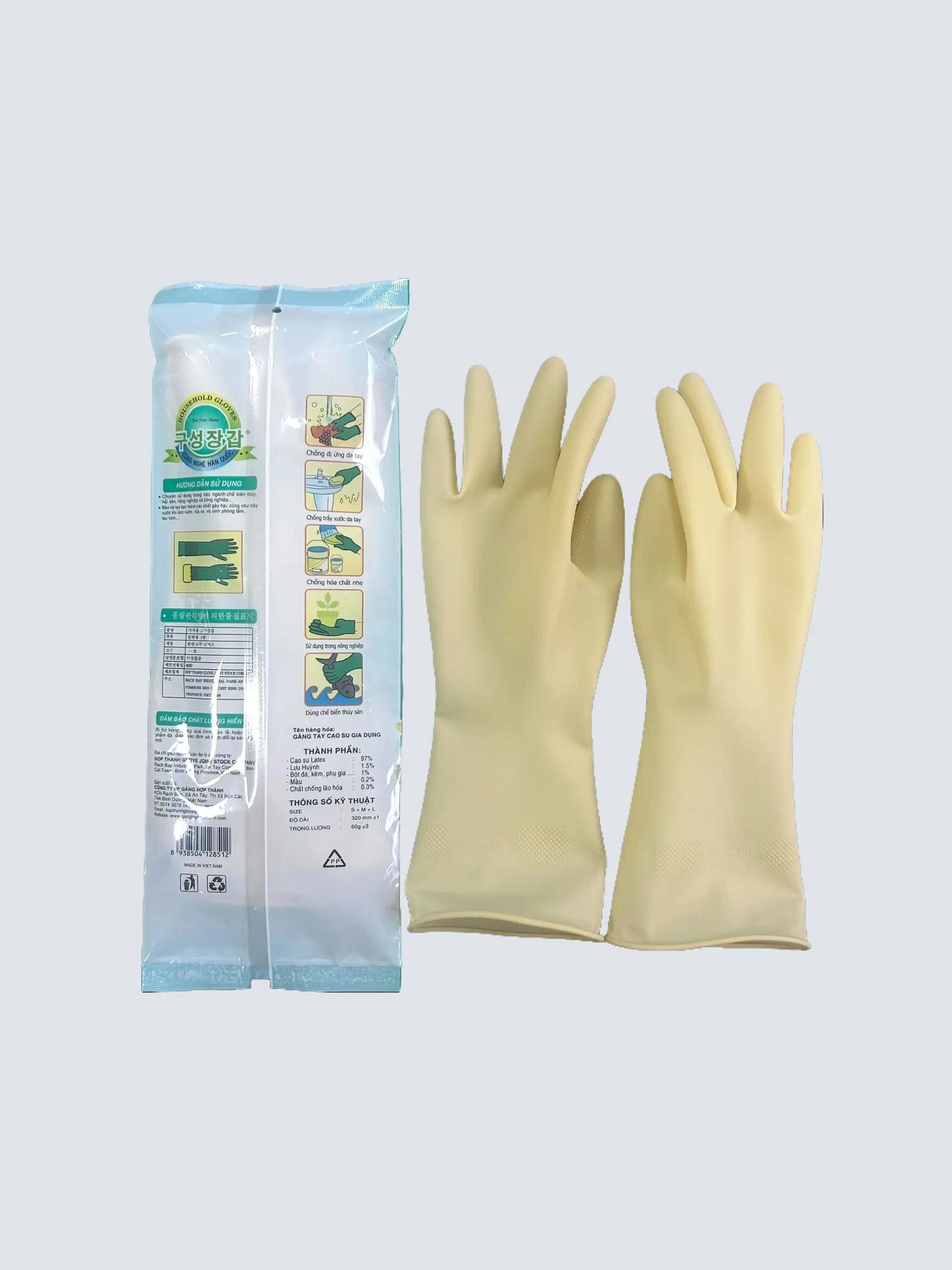 - Chất Lượng Cao: Găng tay cao su Hợp Thành được sản xuất trên dây chuyền hiện đại công nghệ Hàn Quốc.